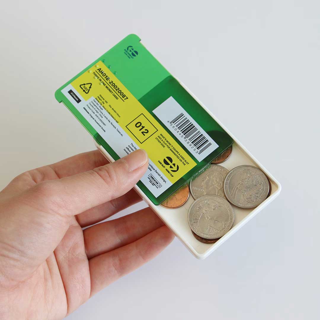 コインケース、カードポケット、マネークリップをひとつにまとめたミニマルな設計。コイン収納に加えてカード約3枚、裏面ポケットに1枚、お札は最大10枚まで収納可能です。