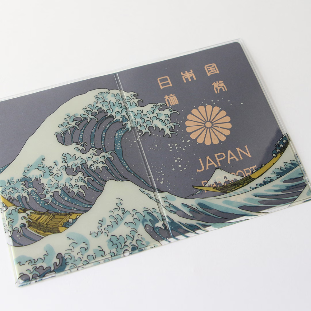 5年用のパスポートを入れることで、北斎の荒波と富士の風景が完成するユニークなアイテム。パスポートのサイズは世界で一定の規格があることから、国内外の旅行者に人気のロングセラーアイテムです。