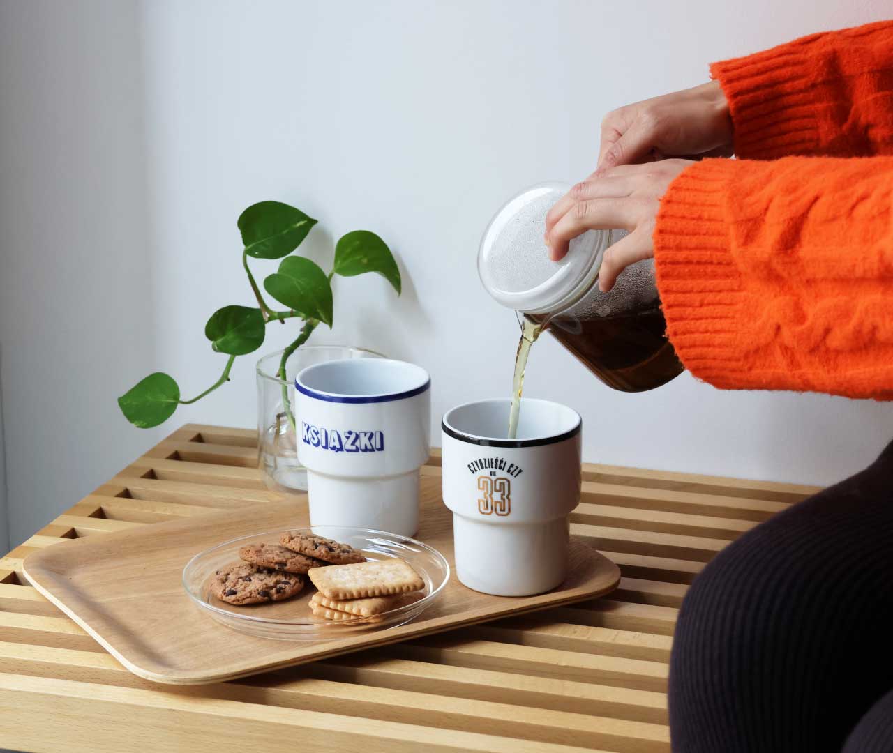 Pour Over Kanne はお湯を細く落とせるので、Porcelain Measuring Mug の目盛りで調整した“ちょうどいい濃さ”のコーヒーづくりにぴったり。Hornsea Mug のアーカイブデザインに注げば、凛とした冬の朝もやさしいひと息に。