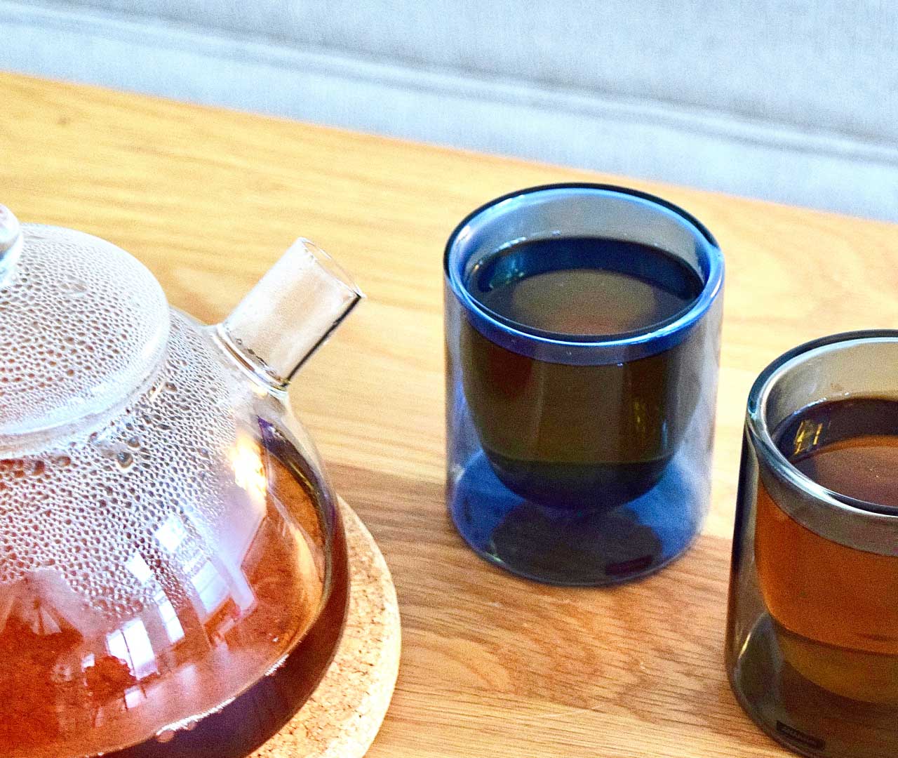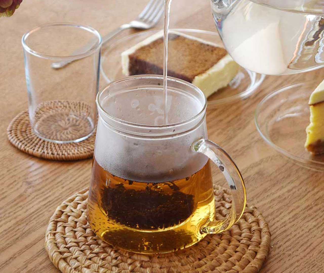 紅茶を淹れたい日には、蒸らしやすい Tea Pot を。湯気の立ちのぼるガラス越しの色合いが美しく、セットでストレーナーがついているので、フィルター無しで抽出でき、濃さもひとめで確認できます。